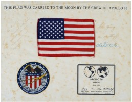 A flag taken to the Moon and back by the Apollo 16 expedition in 1972. The flag was