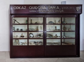 Display case holding examples of the collections of Quido Šimek